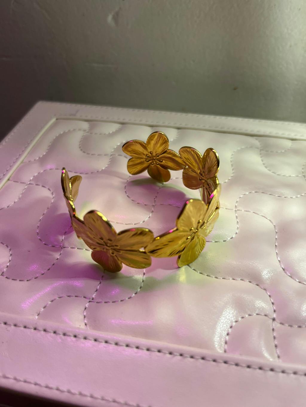 Manchette Fleur Dorée – Acier Inoxydable Élégante & Féminine